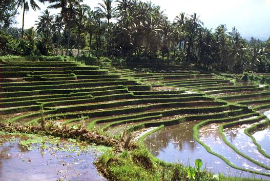 Das Bewässerungssystem für die Reisfelder ist genial, das Wasser wird gezielt vom Berg ins Tal geleitet ...