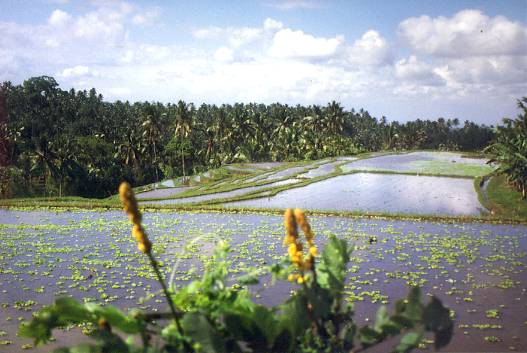 Und von dem oberstem Reisfeld wird dann das Wasser in die tiefergelegenen Reisfelder geleitet...