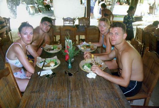 Gegessen wurde auf einem Bananenblatt, das sich in einem Bambuskörbchen befand ...