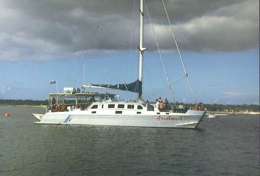 Unser Katamaran schaffte mit vollen Segeln bis zu 13,5 Knoten und mit Motor schaffte er ca. 24 Knoten...