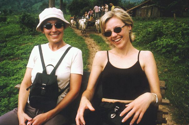 Thailand Die Frauen genossen die holprige Fahrt auf dem Ochsenkarren....