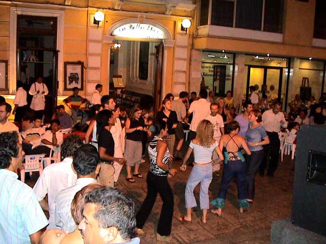 Mexiko 2002 In Merida ist jeden Sonntag Straßenfest. Die Innenstadt wird dabei gesperrt. Die Leute tanzen bis in die späte Nacht auf der Straße
