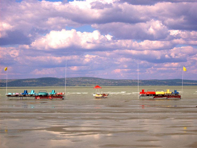 Ungarn 2003 Der Wasserstand des Balaton war ziemlich stark zurück gegangen. Die Tretboote schwimmen normalerweise dort im Wasser